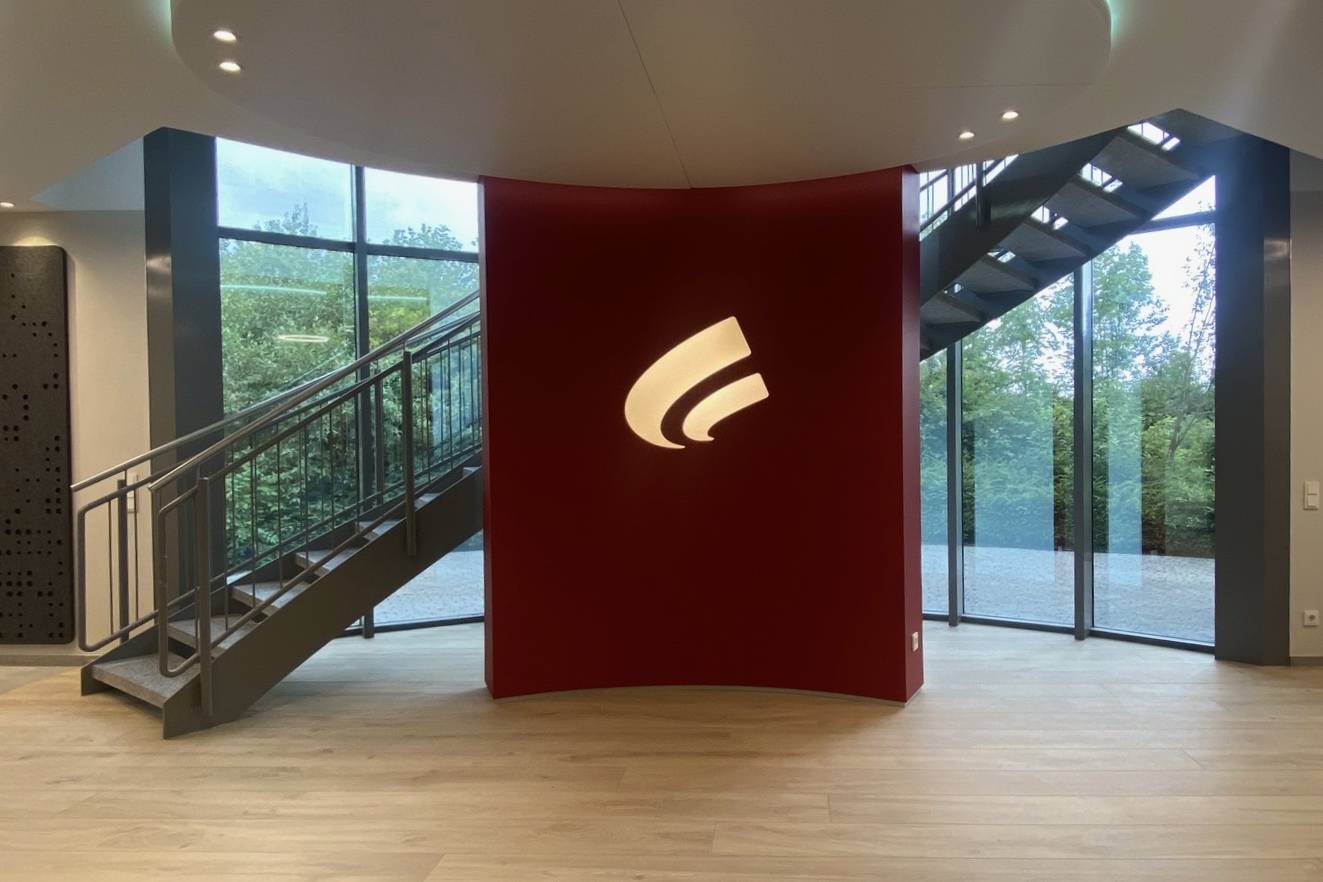 Akustische Optimierung im Treppenhaus und Eingangsbereich.