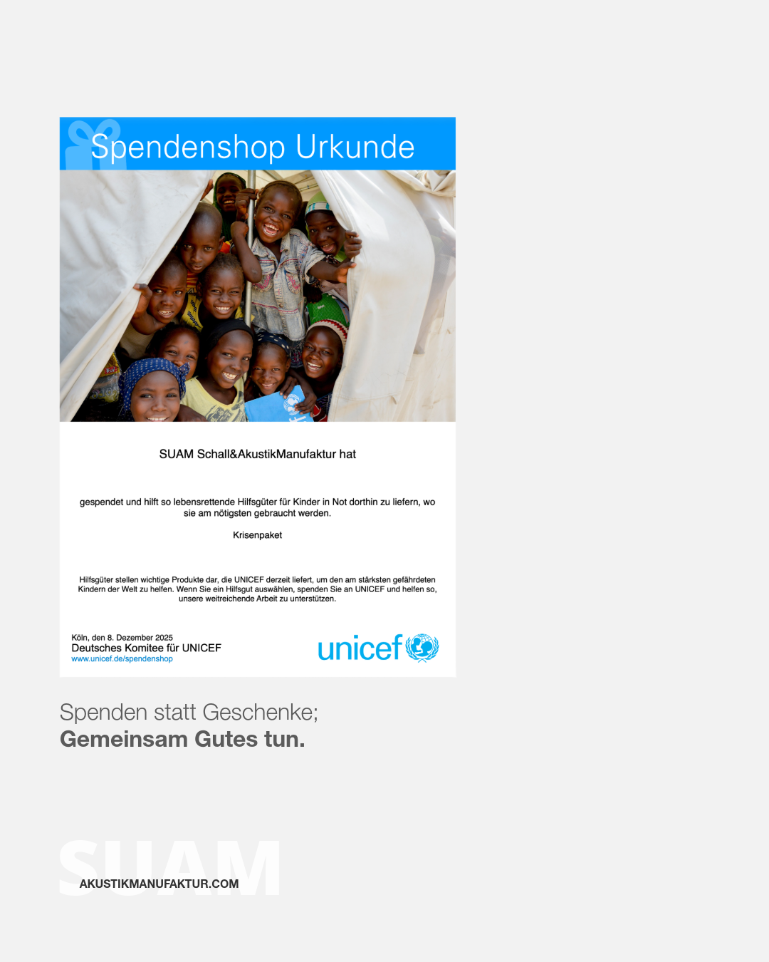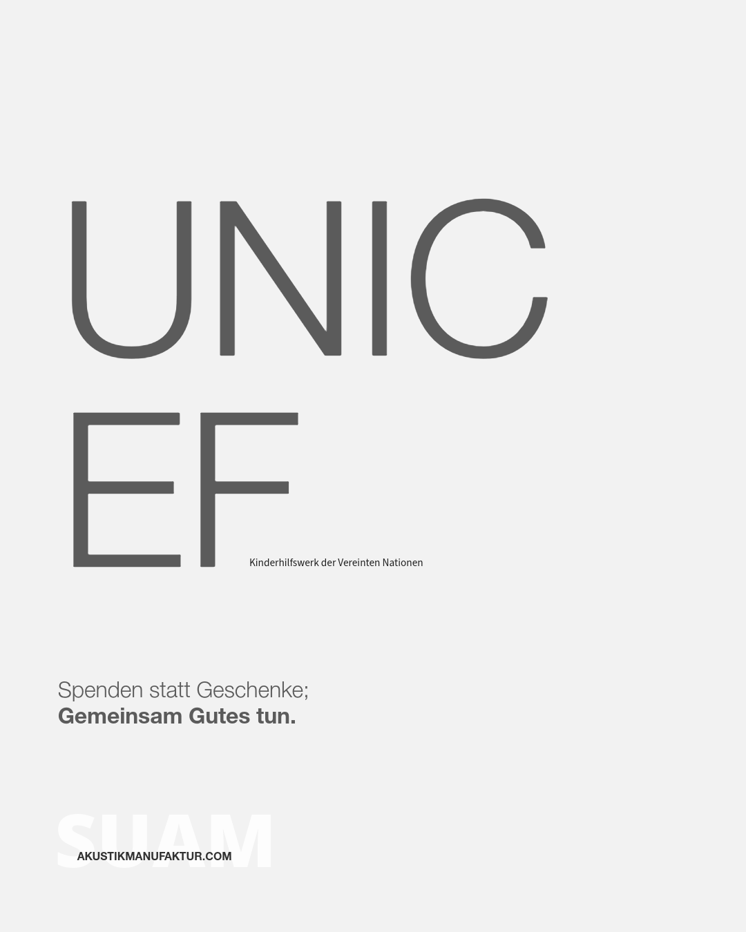 Wir haben uns entschieden, auf Weihnachtsgeschenke zu verzichten und stattdessen im Rahmen unseres sozialen Engagements an UNICEF zu spenden.
