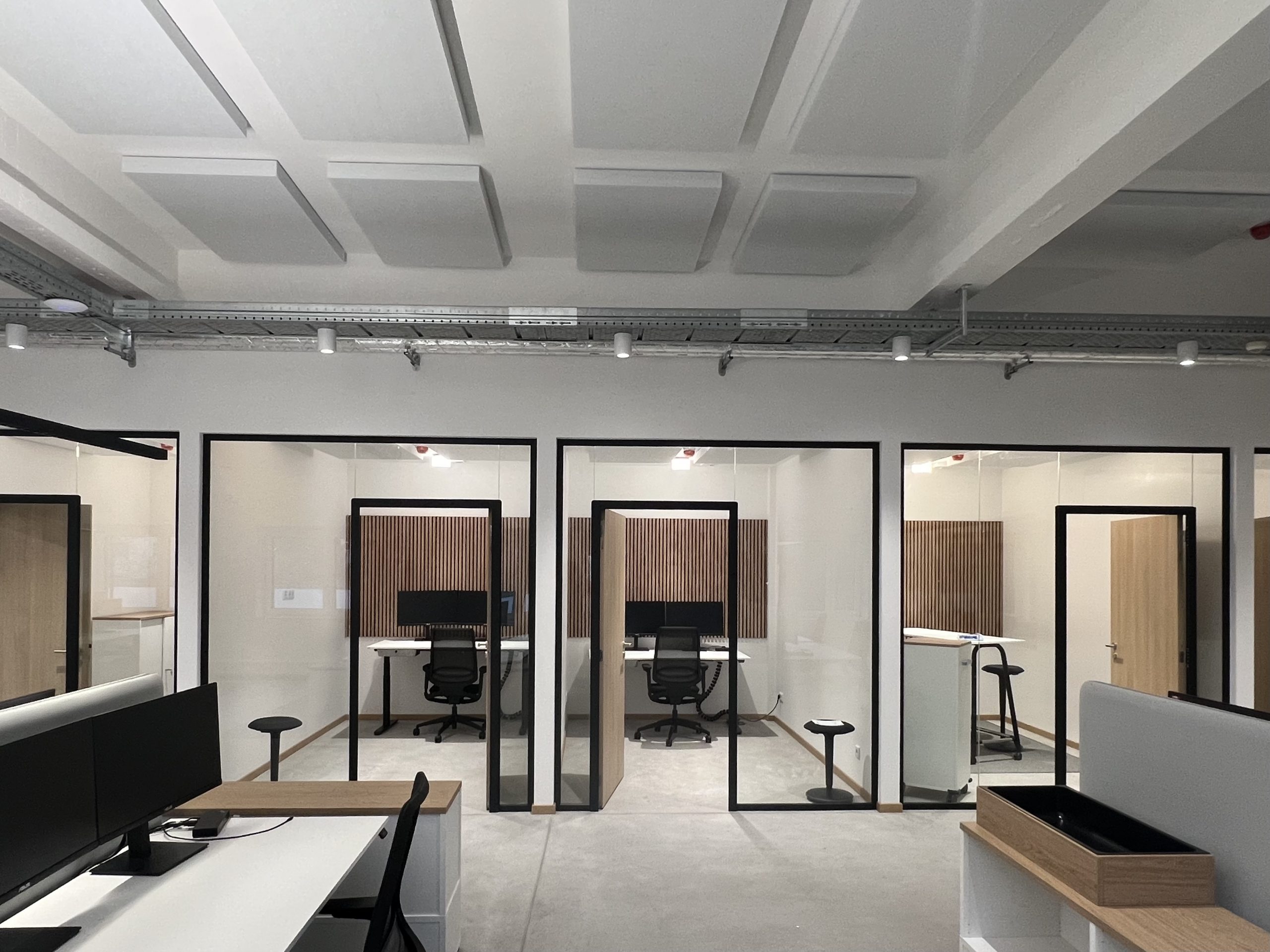 Die raumakustische Planung und Umsetzung wurde durch die Akustikmanufaktur Suam maßgeblich begleitet – mit dem Ziel, eine Arbeitsumgebung zu schaffen, die sowohl funktional als auch akustisch höchsten Anforderungen entspricht.