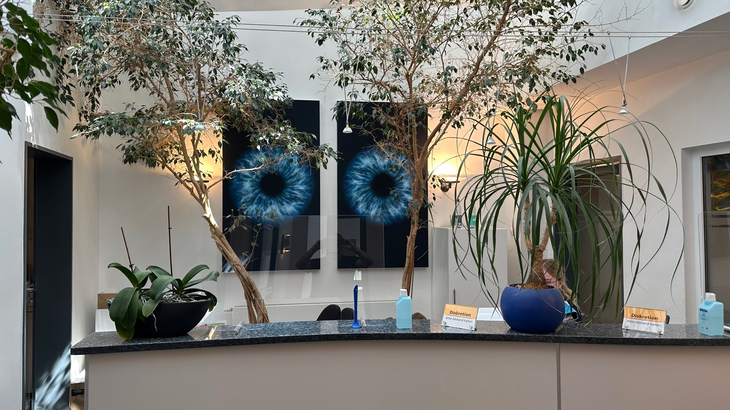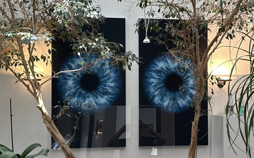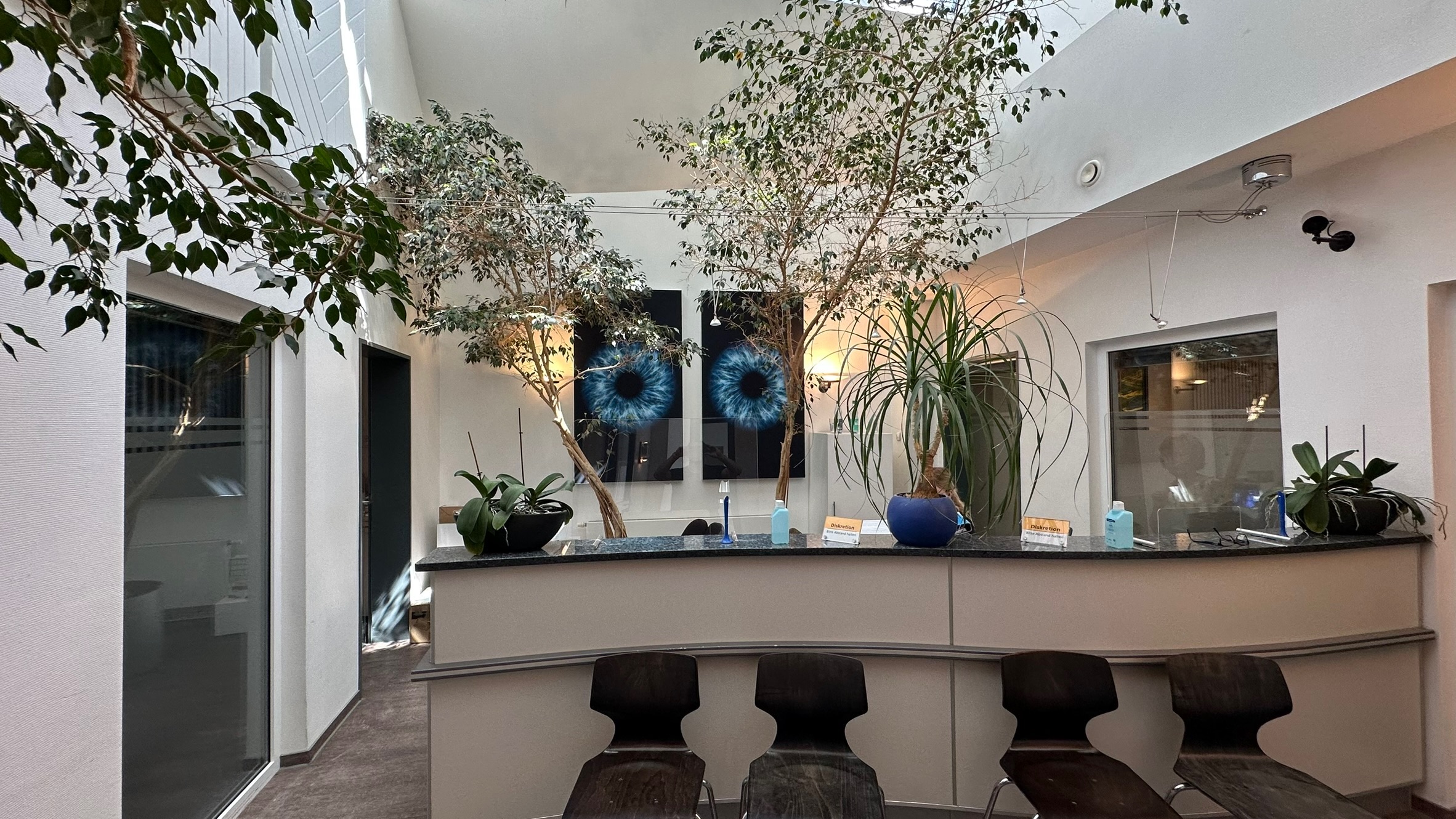 • 2 Bildabsorber mit Augenmotiv, passend zur fachlichen Ausrichtung der Praxis und zur Raumgestaltung
